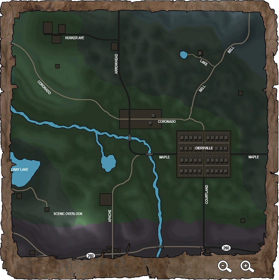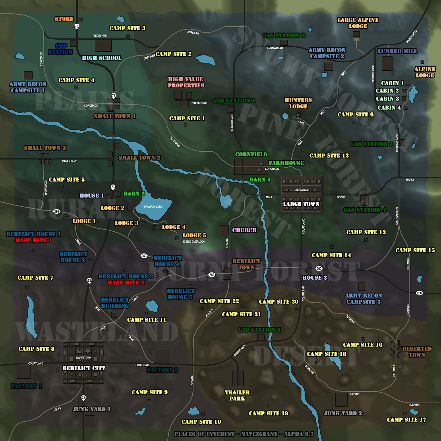 Vous pouvez accéder à la carte en appuyant sur M, cela affichera votre position actuelle dans Navezgane ou votre position actuelle dans Monde.