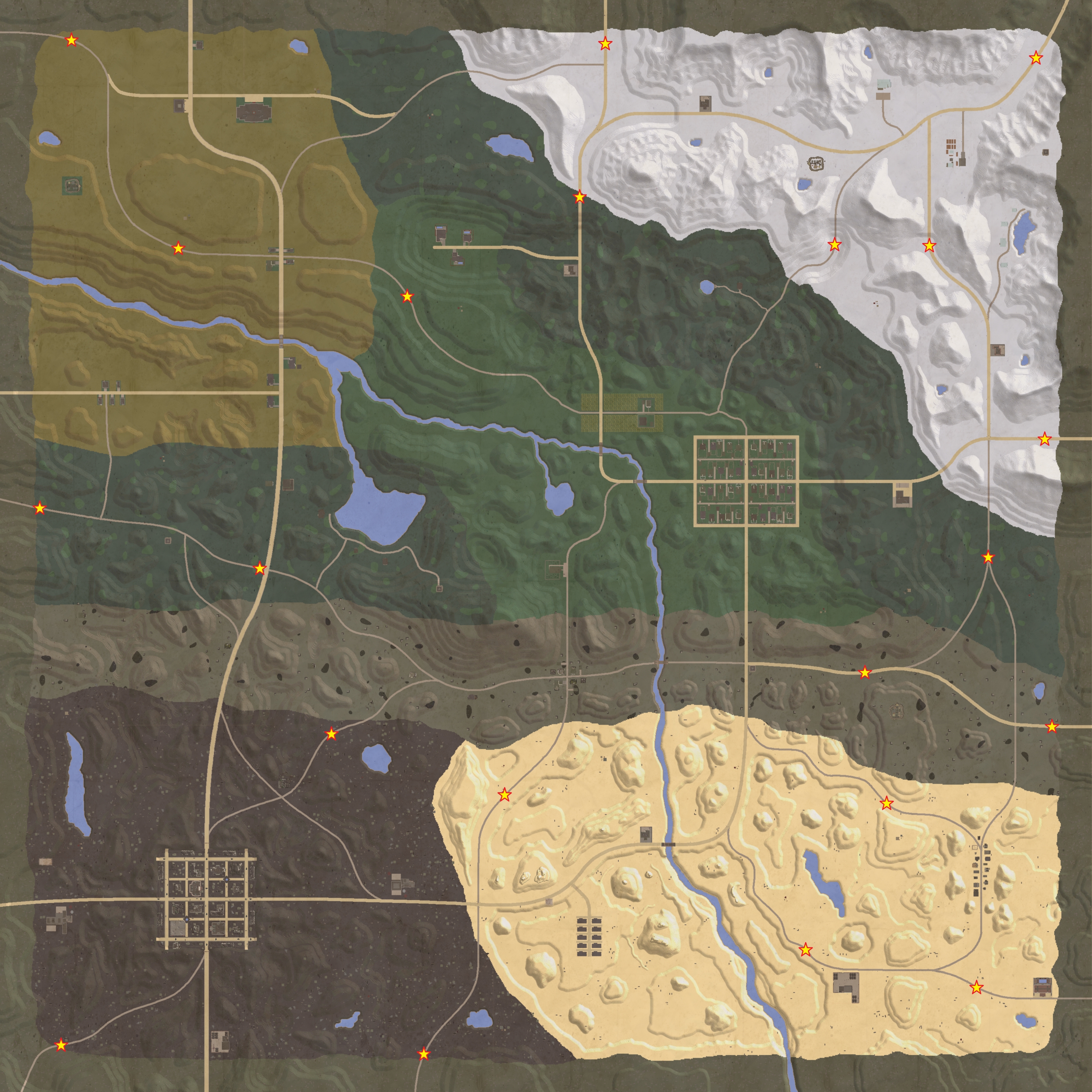 - Zone rouge - bords de la carte (zone de radiation mortelle)
