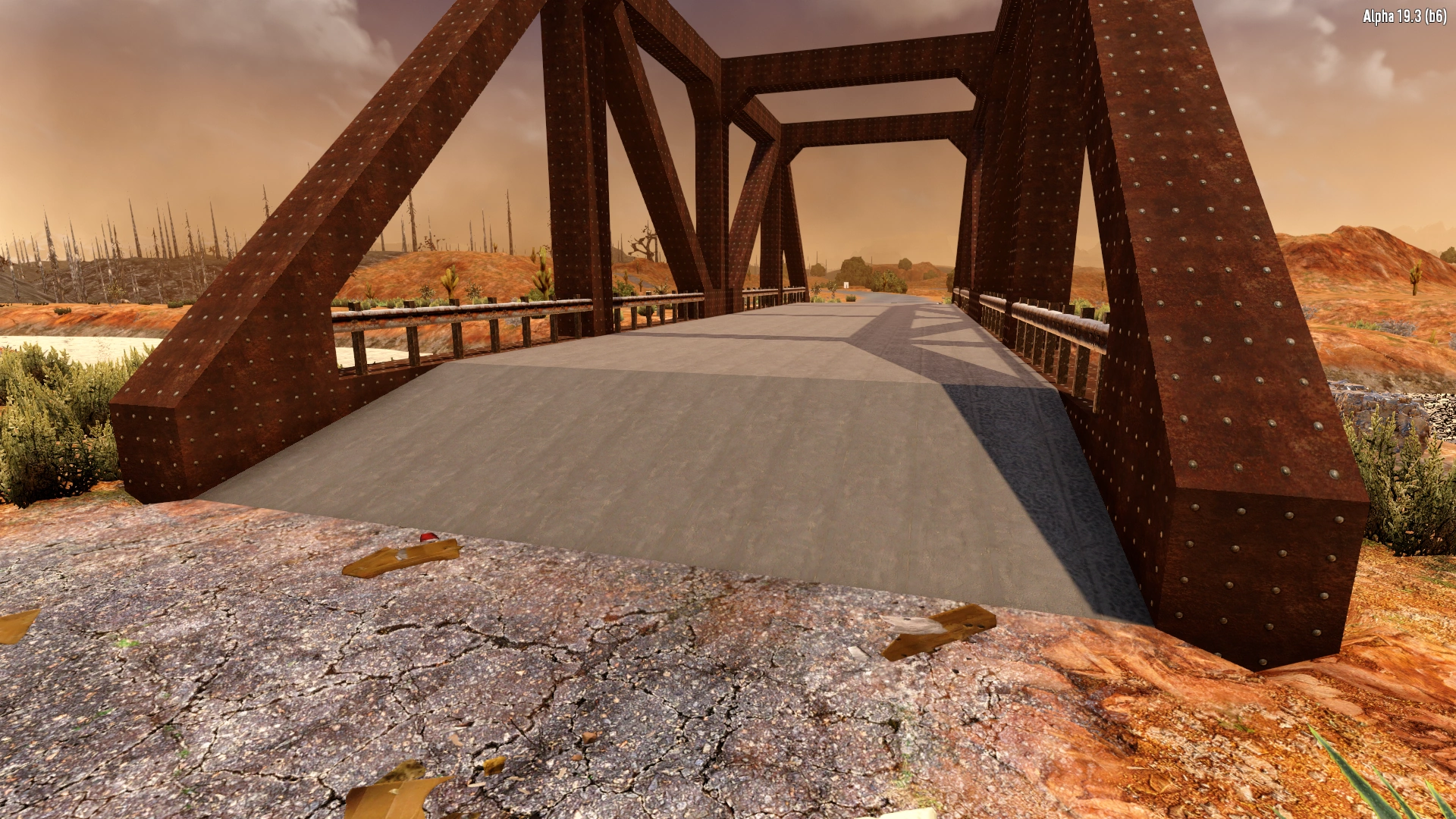 Asphalt Bridge 1 is a structure that pass over the Ansel Adam Rivers through-out Navezgane and usually appear near towns and National Navezgane Forest areas. This bridge is complete and sturdy.