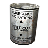 A Large Beef Ration is a Canned Food that can be scavenged from various houses and buildings across the world. As with all canned foods, a Large Beef Ration has the advantage of being ready to consume immediately without the need to be cooked first. Eating a Large Beef Ration will have a positive effect on Fullness as well as on Health.