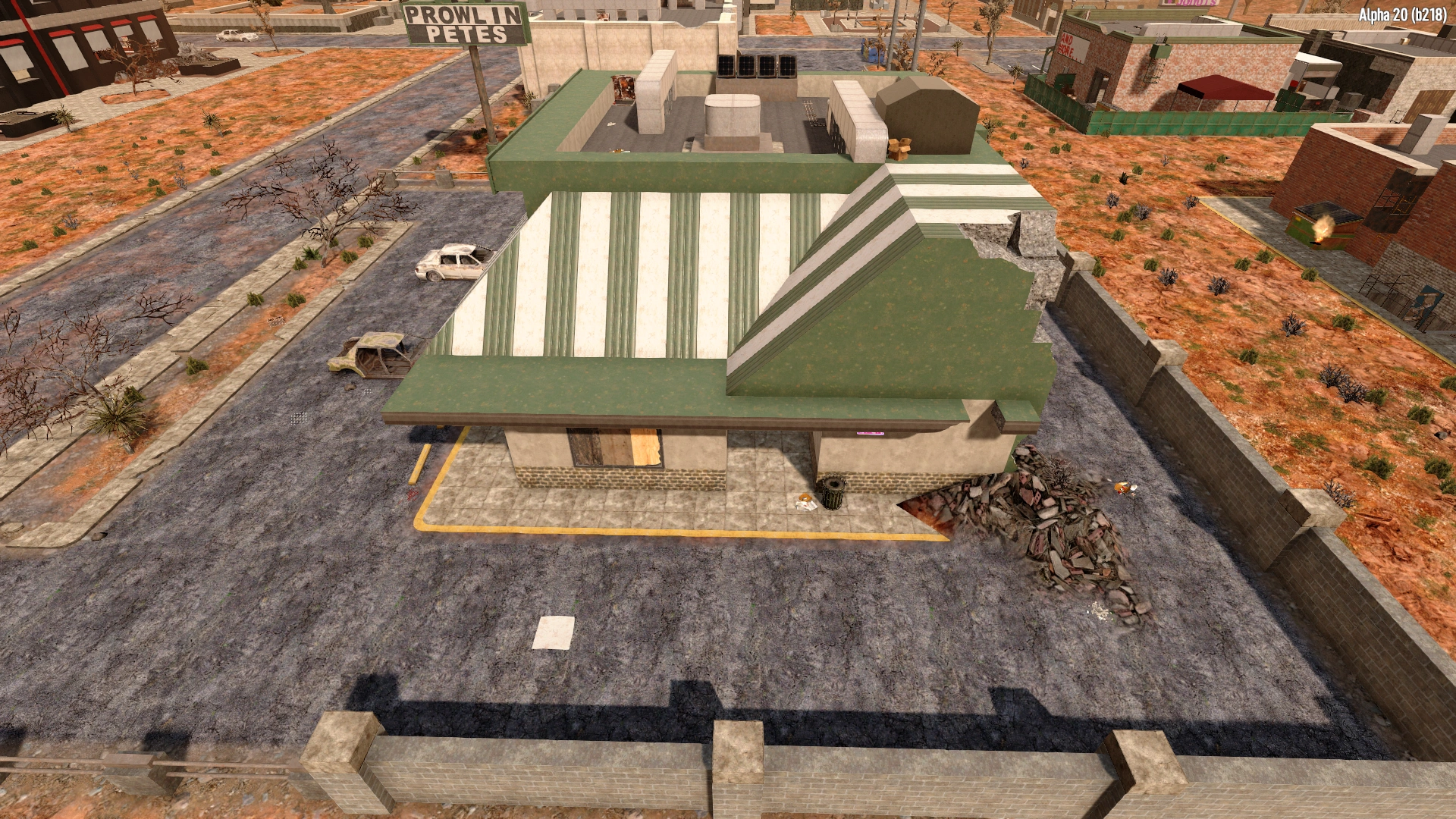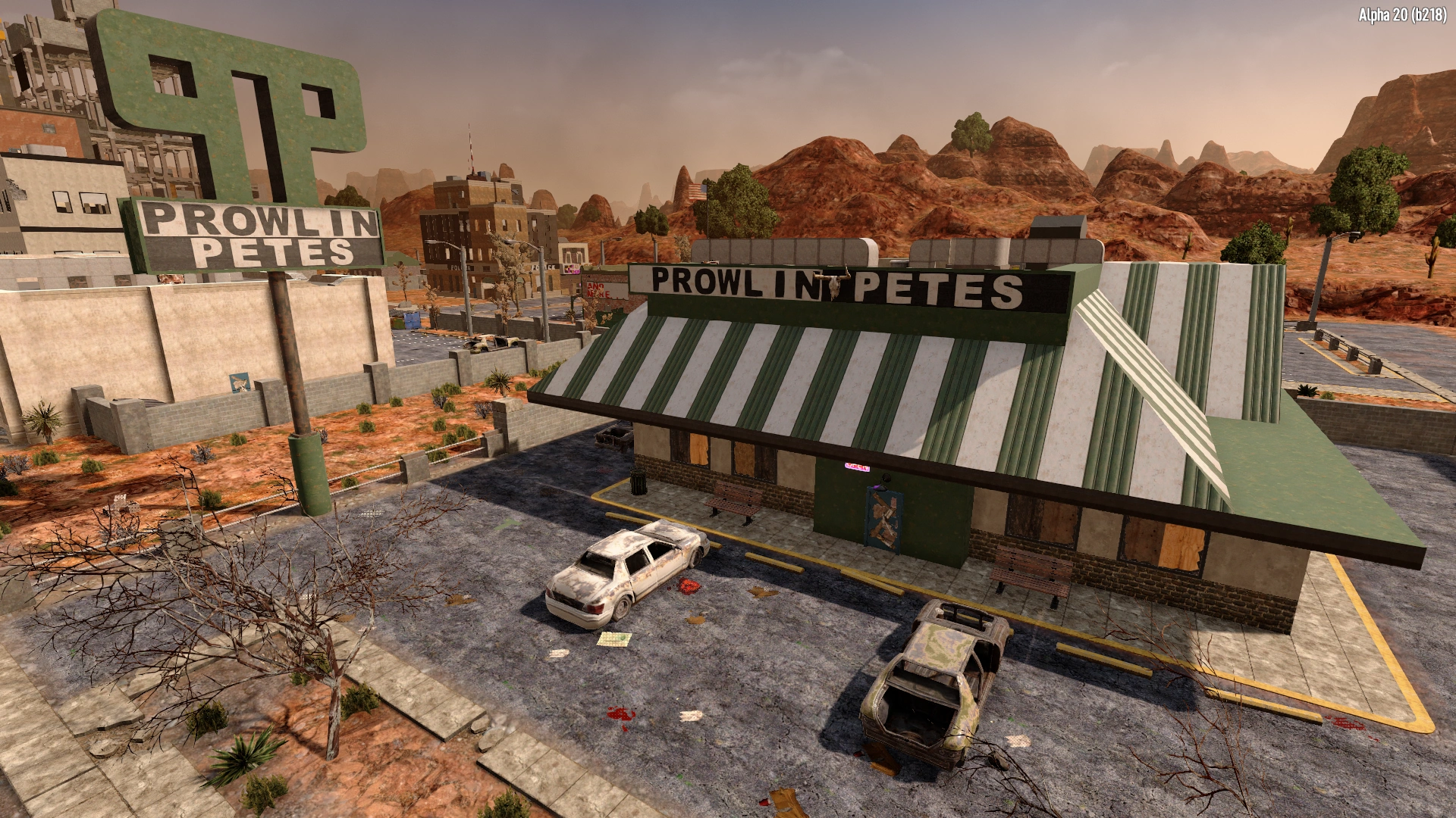 The Prowlin Petes or fastfood_01 is a POI in Departure that was added, alongside the city, in Alpha 16. Prowlin Petes is made up of one room. The room is a diner style room with many leather booths and a kitchen section. The room contains 2 Wall Safes, 4 Drink Coolers, an Oven, a Sink and a single Shamway Crate.