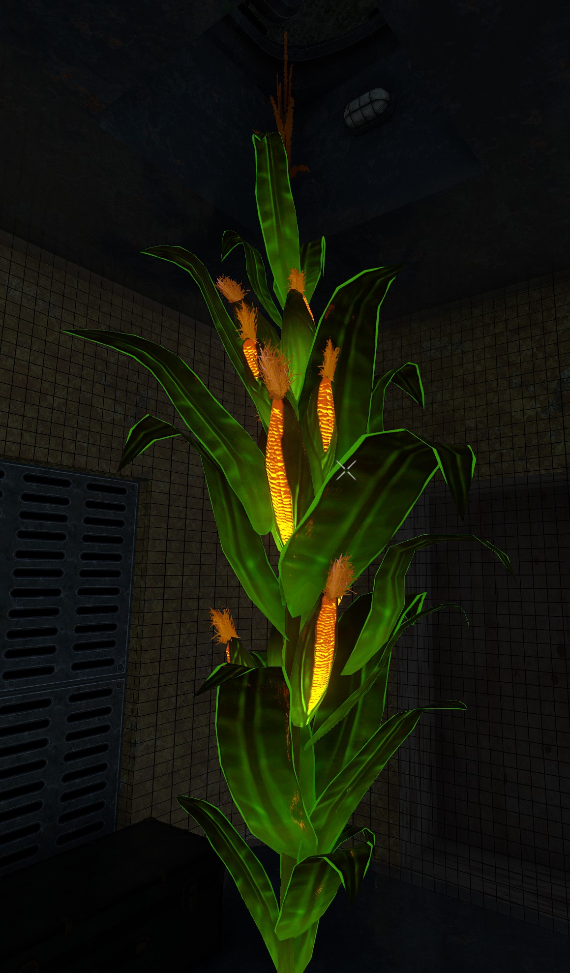 The greenhouse, located in the basement, that contains 8 extra Super Corn plants